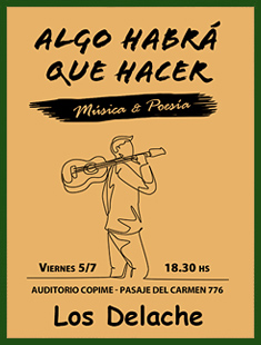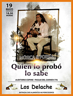 Convencidos de la verdad que encierra esta máxima, las primeras presentaciones de Hernán y Horacio (1991-92) consistieron en una serie de espectáculos en los que música y poesía se aunaban para ofrecer un mensaje. Luego de “Hoy es siempre todavía”, una reivindicación actual del Carpe Diem latino que había estrenado Hernán, decidieron presentar juntos “Don’t Give Up (Quema tu bandera blanca)”, inspirados tal vez por esa atávica necesidad de no bajar los brazos aunque las circunstancias se muestren adversas. Algo después, siguió “Sería Fantástico”, un espacio para compartir con el público algunos sueños y esperanzas comunes. Durante las temporadas de verano en el Valle de Las Leñas, entre 2005 y 2011, Los Delache estrenaron tres nuevos espectáculos de música y poesía: “Caminante, no hay camino”, con el tema del viaje como eje central, “Algo habrá que hacer”, una reflexión acerca de los distintos compromisos que nos toca asumir en la vida, y “Quien lo probó lo sabe”, un recorrido por las diversas formas de expresión del amor en las relaciones de pareja. Entre abril y junio de 2013, Hernán volvió a los escenarios porteños presentando versiones remozadas de los espectáculos “Hoy es siempre todavía” y “Sería fantástico”, en el bar "Los Dalton 2". En el verano de 2014, una vez más en el Hotel Piscis de Las Leñas, presentó una reedición del show “Don’t Give Up (Quema tu bandera blanca)”, con nuevas canciones y textos pero manteniendo el espíritu del que viera la luz más de dos décadas atrás. En 2023, la música y la poesía regresaron a los escenarios porteños con la versión revisada de “Quien lo probó lo sabe”, en el marco del ciclo cultural presentado semanalmente por la Secretaría de Cultura del COPIME. El pasado 5 de julio, Los Delache presentaron en el Auditorio del COPIME una nueva edición de “Algo habrá que hacer”, actualizando la reflexión acerca de nuestra responsabilidad frente a los variados desafíos que se nos plantean día a día. En definitiva, una serie de propuestas dirigidas especialmente a aquellos que siempre pretendieron encontrar en la música algo más que melodías armoniosas y, en la poesía, algo más que palabras impresas. Cualquiera de los espectáculos de música y poesía aquí mencionados pueden ser contratados para su presentación en eventos o para amenizar las ofertas de diversos pubs o salas de espectáculos. Pueden verse grabaciones de algunas canciones interpretadas en estos shows en la sección Audios y Videos. |